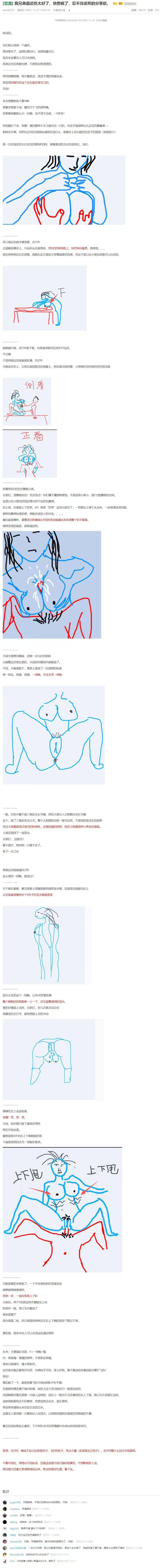 记录了一个既有分享欲的大兄弟的一次按摩经历,不仅有文字描述,还有手绘配图。